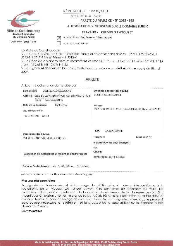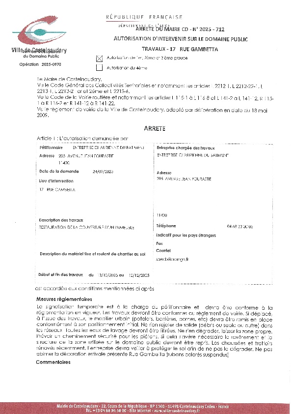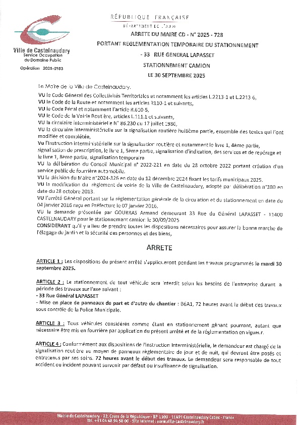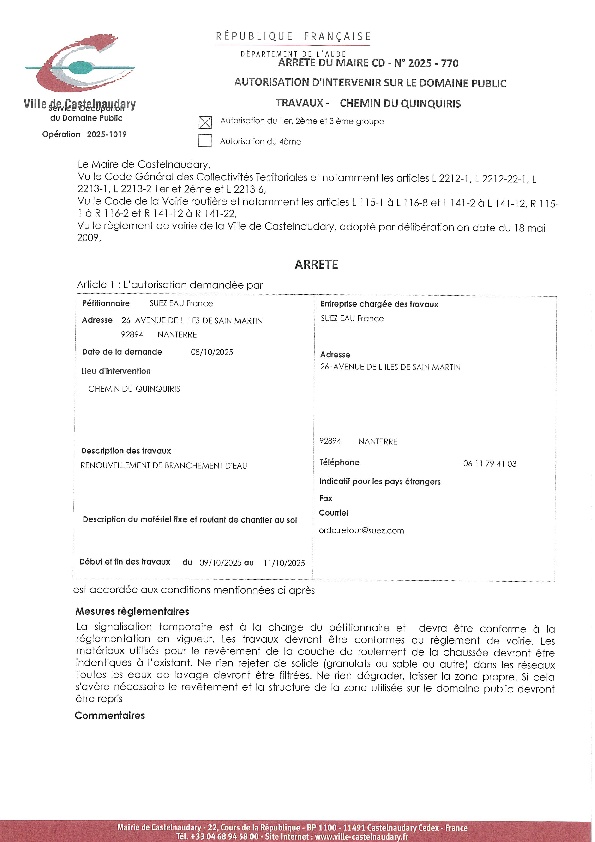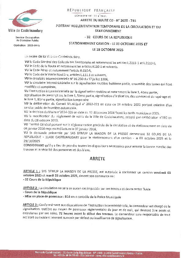 Recueil du 03 octobre 2025