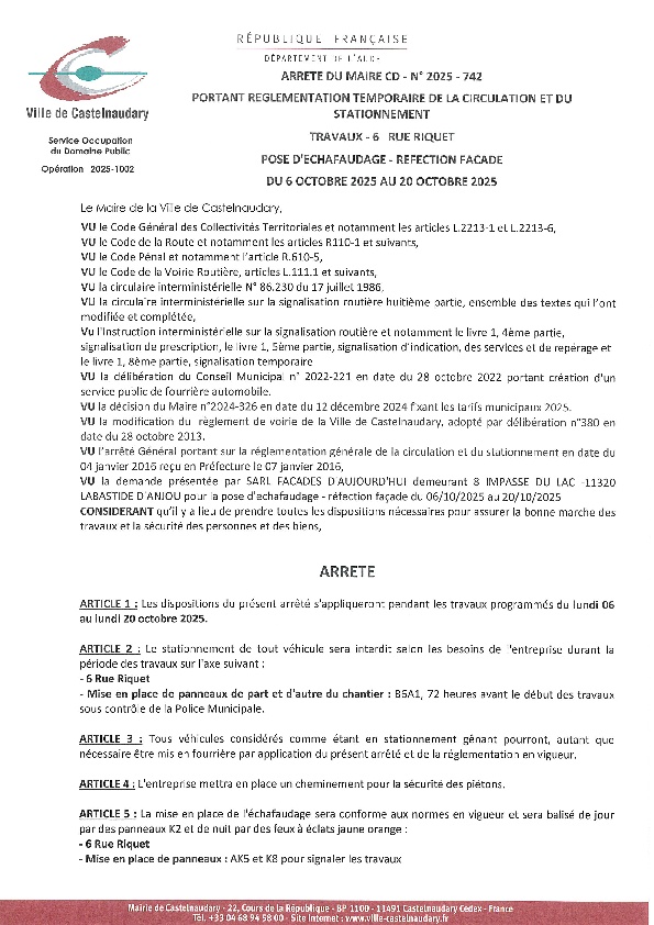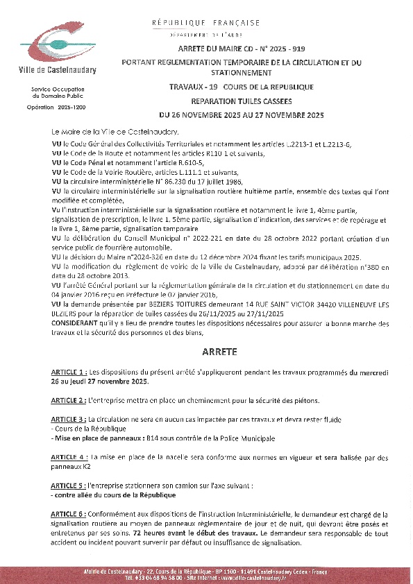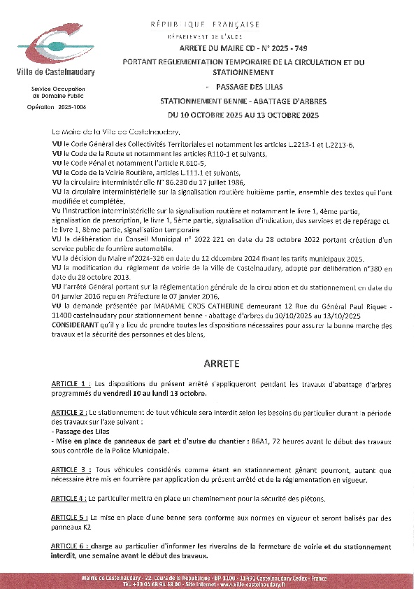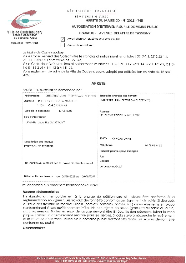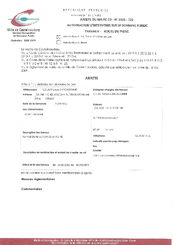 Recueil du 06 octobre 2025