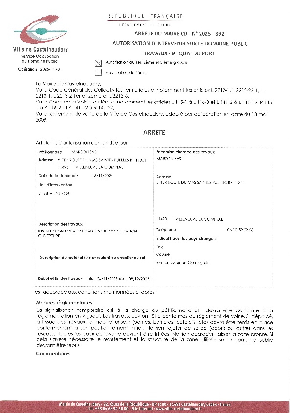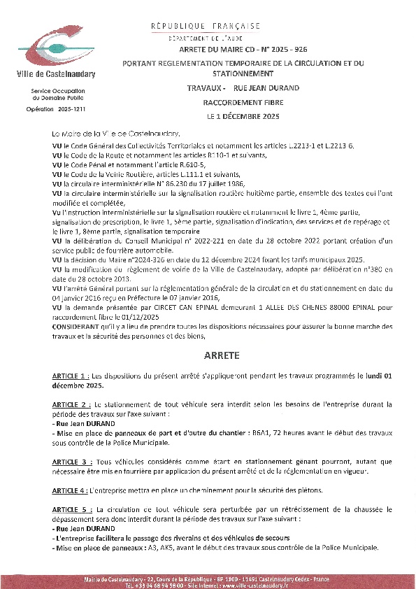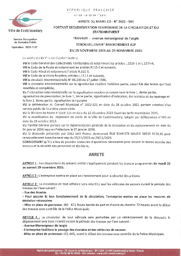 Recueil du 01 décembre 2025