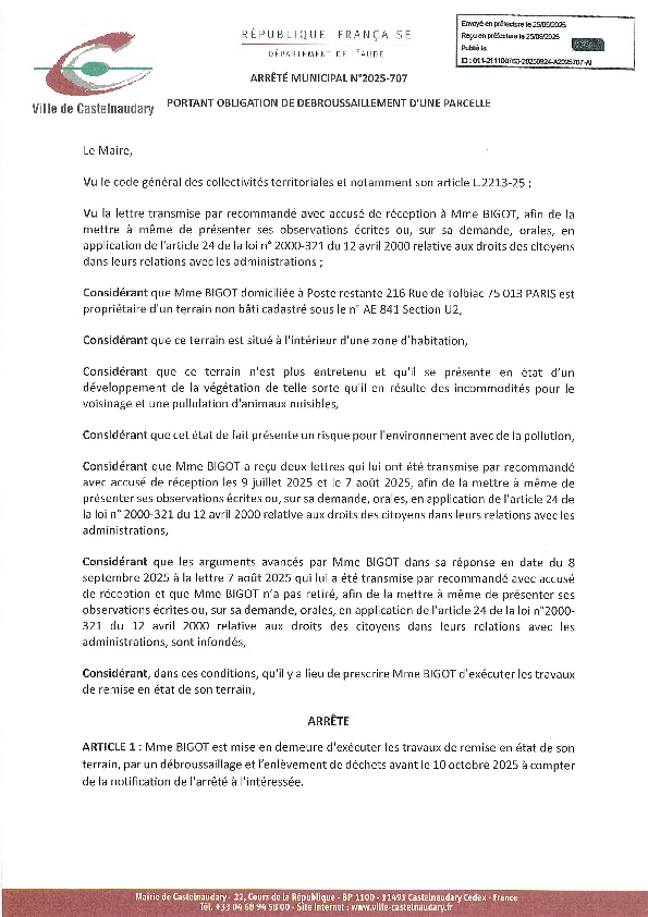 Recueil du 25 août 2025