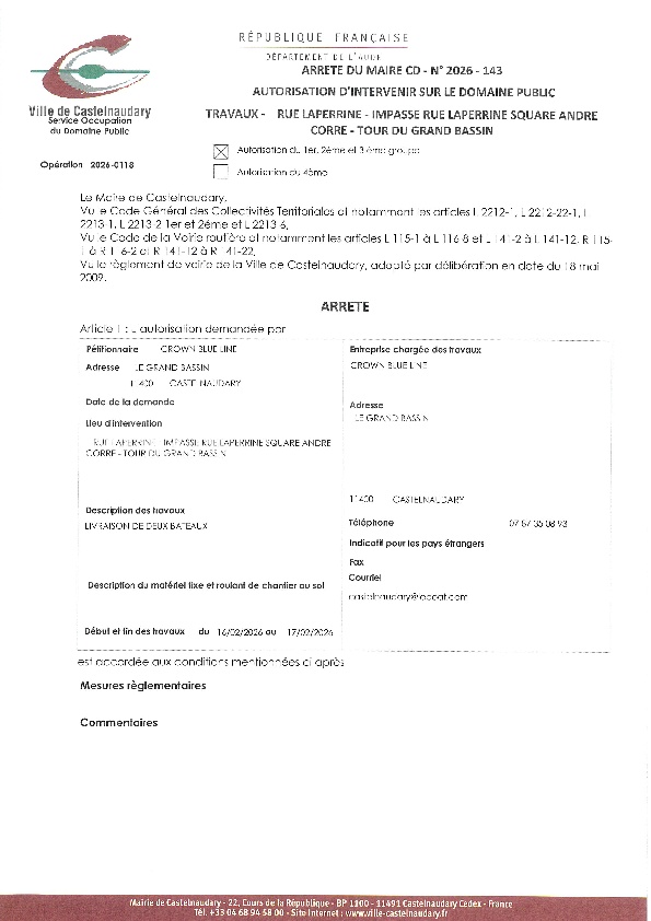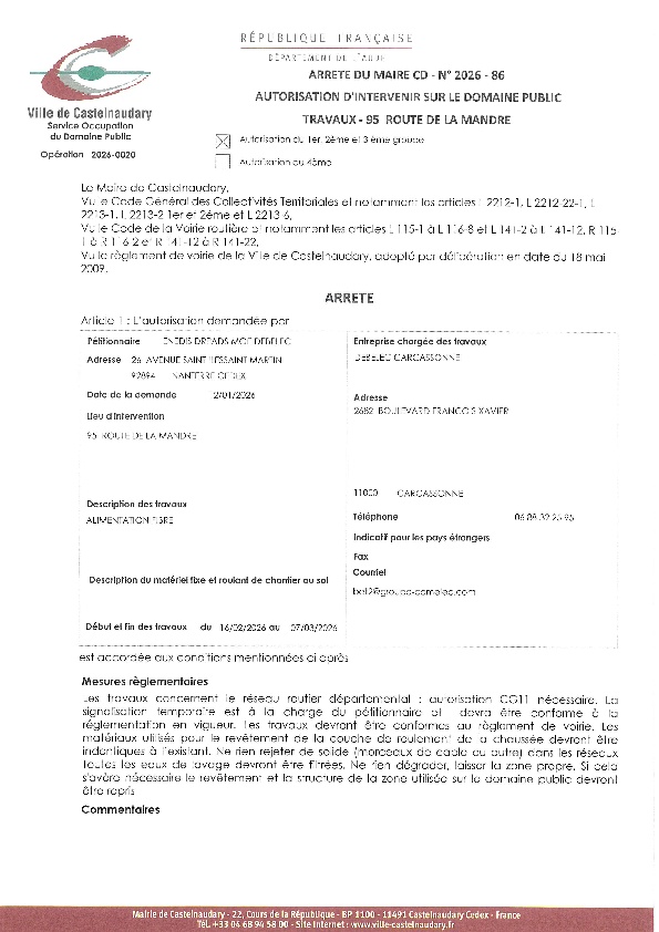 Recueil du 02 février 2026