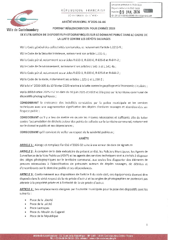 Recueil du 16 janvier 2026