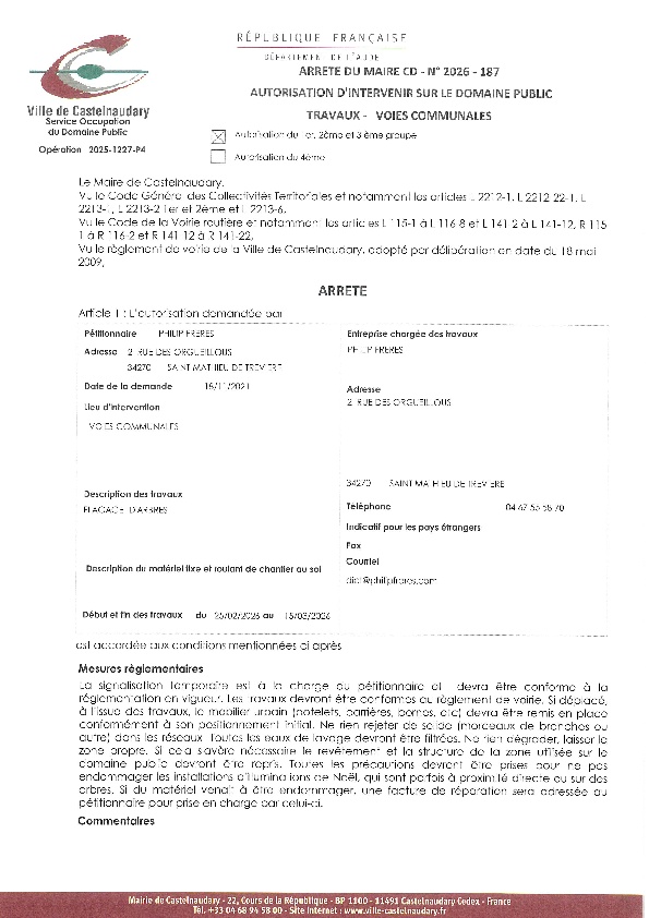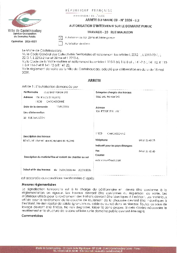 Recueil du 03 février 2026