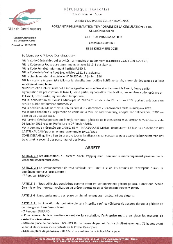 Recueil du 05 décembre 2025