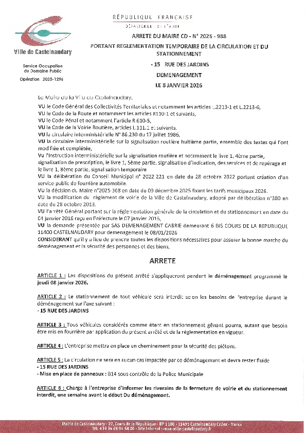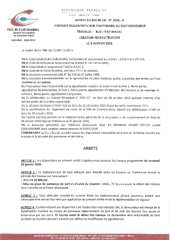 Recueil du 08 janvier 2026