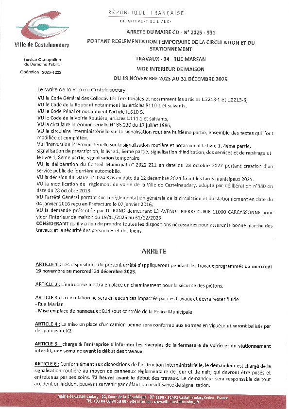 Recueil du 01 décembre 2025