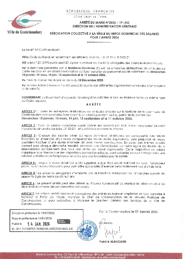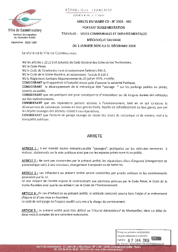 Recueil du 07 janvier 2026