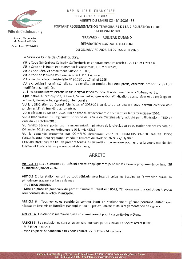 Recueil du 26 janvier 2026