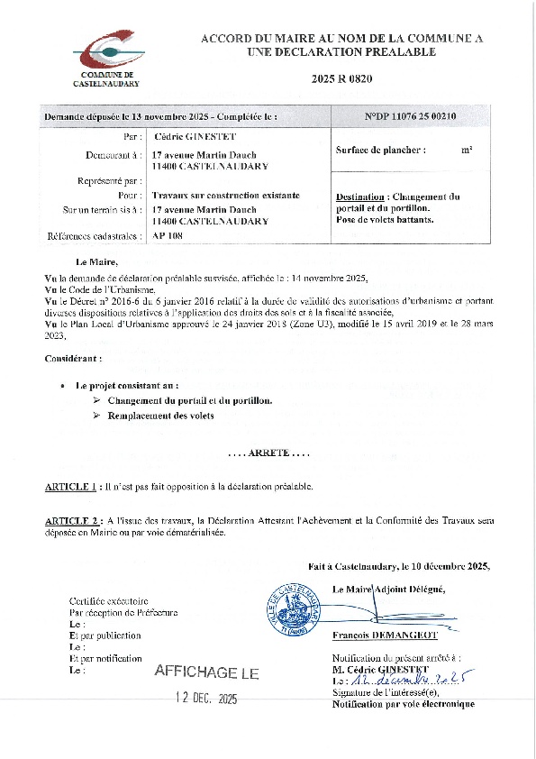 Recueil du 12 décembre 2025