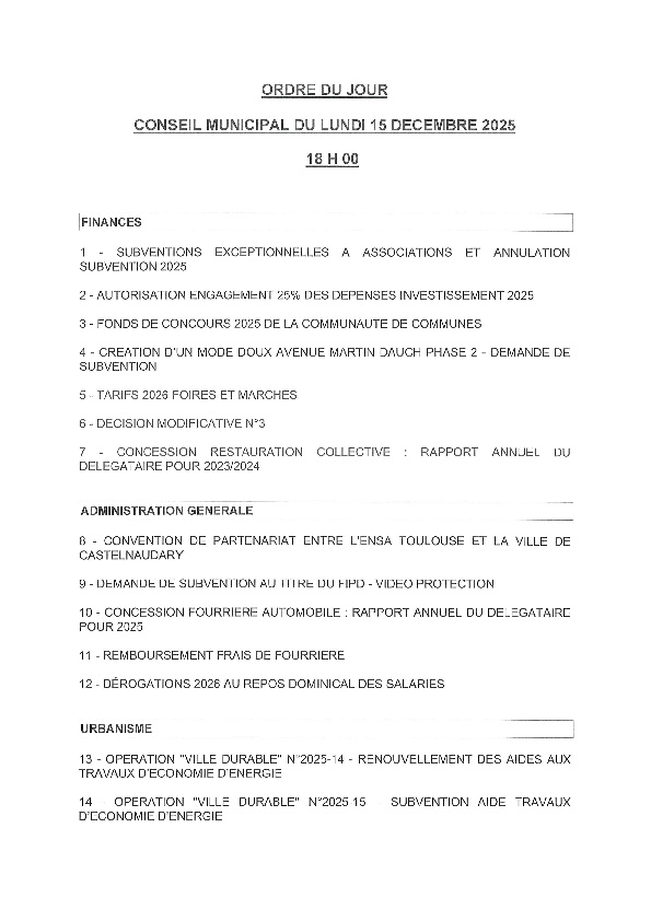 Liste des délibérations